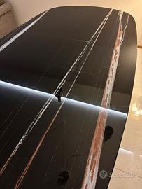 Tavolo Devina Nais Cosmopolitan, misura 200x100, forma ellissoidale, piano in legno, effetto marmo nero con vetro e gambe in metallo nero. Come nuovo, senza segni. No spedizione, solo ritiro a mano.