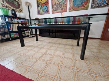 Vendo iconico tavolo di Cassina disegnato da LeCorbusier negli anni '60, composta da una gamba centrale in metallo nero e un piano in cristallo alto 1cm.