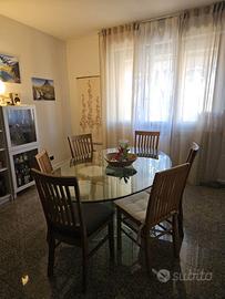 Vendo tavolo vintage ovale di design di vetro cristallo marca Rimadesio. Risale alla fine degli Anni Ottanta-inizio Anni Novanta. Il tavolo ospita comodamente 6 persone, ma si può arrivare a 8 persone. La base è di vetro cristallo a forma di "s". Sono presenti alcune imperfezioni e graffi, tuttavia la superficie è per la gran parte perfettamente liscia. No spedizioni. Consegna a mano ad Acqui Terme (AL).