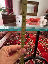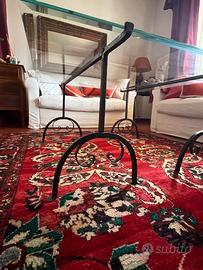 Vendo tavolo quadrato di cristallo, con gambe in ferro battuto.