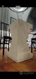 Tavolo di cristallo ottagonale nero con pilastro centrale in travertino molto pregiato, taglio geometrico di design.