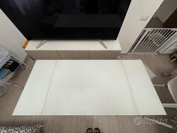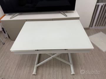 Vendo a 250€ tavolo comprato l’anno scorso a 550€ con misura da chiuso 100x60 e da aperto 170x60 ha 3 diverse altezze può essere usato come tavolino da soggiorno per poi diventare tavolo grande . Come si vede nella foto c’è una piccola macchia che si intravede . Pesa tanto essendo di vetro satinato