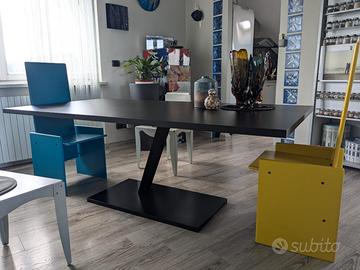 TAVOLO "ELEMENT" di DESALTO iconico ed emblema di purezza, sintesi progettuale del visionario design TOKUJIN YOSHIOKA . Il sostegno centrale, in bilico tra i due elementi orizzontali, sfida la gravità, sospesa tra terra e cielo e tra passato e futuro. Progetto particolarmente complesso nell' ingegnerizzazione. Ottime condizioni. Ideale per gli amanti del design. Piccoli segni di usura (piccolo segno di punta). Misure: 200x99cm. Colore: Nero opaco.