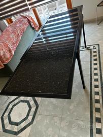 Vendo splendido tavolo da soggiorno dal design elegante e moderno, perfetto per chi vuole dare un tocco di classe alla propria casa. Struttura: ferro laccato nero, solida e raffinata *Piano: pregiate lastre in marmo Labrador Black Pearl, effetto unico e luminoso *Misure chiuso: 122 x 90 cm *Apribile fino al doppio: ideale per ospiti e cene importanti. Un tavolo che unisce stile, qualità e funzionalità, perfetto sia per ambienti moderni che più ricercati. Prezzo occasione: 800€ (valore decisamente superiore). Oggetto di grande impatto, difficile da trovare a questo prezzo. Spedizione non inclusa , ritiro Sul Posto.