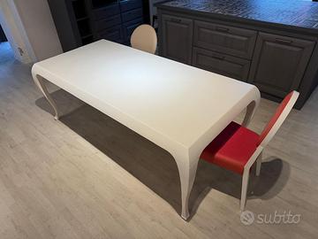 Tavolo laccato bianco di design cm 210x 100 fisso , compreso nel prezzo 4 sedie dà cambiare rivestimento