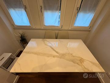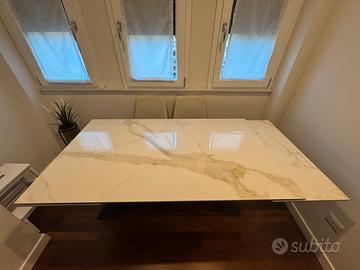 Tavolo Zamagna Slide – Design, eleganza e funzionalità Occasione imperdibile! Vendo splendido tavolo Zamagna modello Slide, scelto per arredare con stile e modernità, ma purtroppo acquistato con dimensioni non adatte al nostro ambiente. ✨ Caratteristiche principali •Struttura solida in metallo verniciato effetto corten •Piano in gres/ceramica Calacatta Oro lucido, con eleganti venature dorate •Dimensioni: 160 x 90 cm, allungabile fino a 250 cm con sistema scorrevole pratico e robusto •Design contemporaneo, ideale per chi cerca un complemento d’arredo che unisca estetica e funzionalità 💎 Condizioni pari al nuovo, usato pochissimo. 💰 Prezzo: 1300 € trattabili Un vero affare rispetto al valore di mercato. 📍 Ritiro a carico dell’acquirente. Piccolo sceggiatura in un angolo