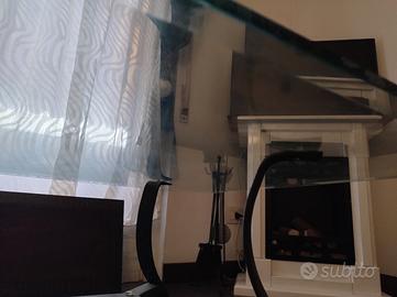 tavolo di ferro battuto con vetri di cristallo temperato. dimensione tavolo 120x70cm,altezza 35cm.