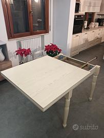vendo tavolo vero legno no truciolare allungabile misura da chiuso 90x90 da aperto 180x90, buone condizioni il meccanismo di apertura funziona bene colore beige decapato
