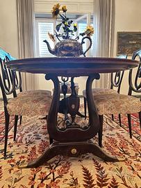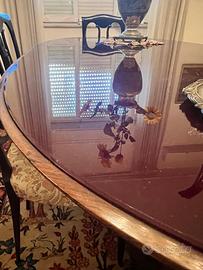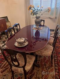 Tavolo di legno pregiato, raffinato ed elegante. Antico ma tenuto benissimo. Si vende con 6 sedie come da foto . Ritiro zona centro Olbia