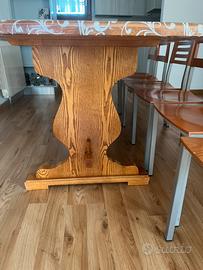 Tavolo di legno massello 180cm non allungabile , tenuto benissimo (chi e interessato faro la foto senza tovaglia protettiva ) , le seggiole sono in buon stato tranne una