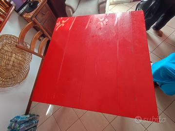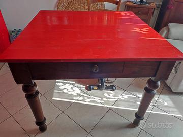 Tavolo d'epoca di olmo fine '800 legno massiccio, già restaurato e rinnovato pronto all'uso. Un metro per un metro (altezza 98), molto robusto e solido. Ideale in cucina. Ritiro in loco.