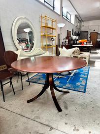 Tavolo da pranzo disegnato da Osvaldo Borsani per Tecno, anni '60. Piano rotondo in legno con finitura calda e uniforme, sostenuto da una base scultorea iconica con quattro elementi curvati in metallo che si aprono a raggiera, creando una struttura elegante e dinamica. Il contrasto tra il top materico e la base fluida e quasi organica è tipico del linguaggio di Borsani, dove tecnica e design si fondono in modo perfetto. Un tavolo che unisce funzionalità e ricerca formale, pensato per durare nel tempo ma con una presenza scenica importante. Dimensioni: D. 130 x A. 74 cm 📍 Showroom a Quarto (Napoli) 🗓️ Appuntamenti: Lun–Sab | 10:00–14:00 🛒 Scopri di più su Instagram @emporium_900