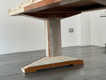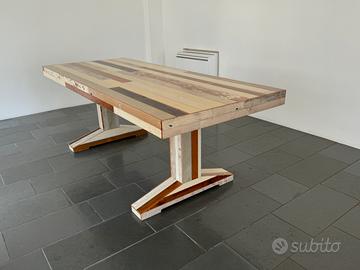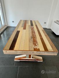 Tavolo di Piet Hein Eek, noto designer contemporaneo olandese, che lavora con legni riciclati e resina trasparente.