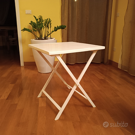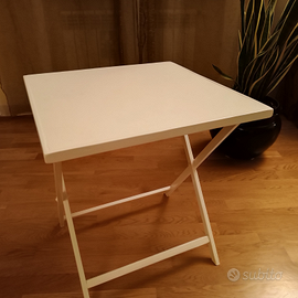 Tavolo di servizio e/o cortesia di legno laccato bianco. Fattura artigianale. Quadrato, misura lato 56 cm, altezza 63 cm.