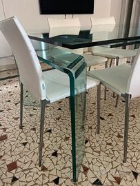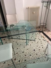 Vendo tavolo di vetro allungabile dimensioni: linghezza chiuso 180 cm; lunghezza tutto aperto 284 cm (ciascuna prolunga a scompaa 52 cm); larghezza 100 cm; altezza 75 cm. Perfette condizoni. Nessuna scheggiatura. Smontaggio e trasporto a carico del compratore. Diponibile a vendere anche le 6 sedie, trattaiva del prezzo a parte.