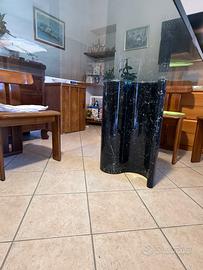 Tavolo di vetro con gambe in marmo nero