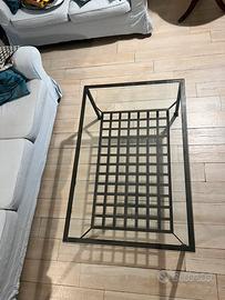 Tavolo in vetro e ferro pieno lavorato a mano vintage anni 70, molto robusto. La griglia inferiore non è solo estetica ma fa da piano per riviste/oggetti Lunghezza: 140 cm Larghezza: 70 cm Altezza: 50 cm Trasporto a carico dell’acquirente