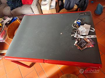 Oltre il design, il tavolo è robusto (struttura in metallo) e le caratteristiche del piano d'appoggio si leggono nella prima foto, si presenta in ottime condizioni.