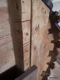 La superficie del piano, lastronata a spicchi, presenta decorazioni vegetali a palmette e una delicata ringhierina sagomata con pignette decorative in acero.