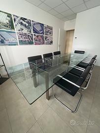 Tavolo Doge design di Carlo Scarpa per Cassina, completo di 8 sedie in pelle e acciaio.