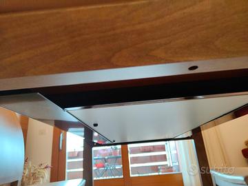 tavolo allungabile Domitalia 140x90x76 cm piano in vetro acidato colore tortora/beige gambe noce due allunghe da 45 cm ciascuna smontaggio e ritiro a carico dell' acquirente vetro con qualche alone che si vede controluce