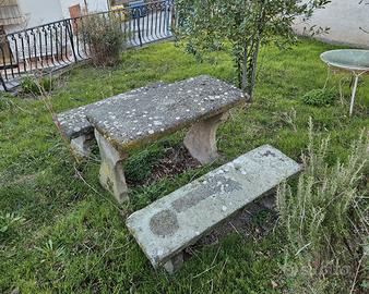 Tavolo e 2 Panche Pietra Antiche '900 1.5 m