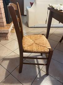 Vendo tavolo in legno in buono stato 120x80 h. 78, completo di cassetto e 4 sedie impagliate.