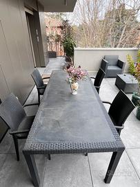 Vendo elegante tavolo da esterno con 4 sedie coordinate, perfetto per terrazzo, giardino o veranda. Il tavolo ha una struttura solida e resistente con piano ampio e pratico, ideale per pranzi e cene all’aperto. Design moderno in colore scuro che si abbina facilmente a qualsiasi ambiente. 📏 Misure tavolo: •Lunghezza: 220 cm •Larghezza: 91 cm •Altezza: 73 cm Le sedie sono comode, leggere e resistenti agli agenti atmosferici. ✅ Ottime condizioni ✅ Facile da pulire ✅ Subito disponibile con consegna su Bologna