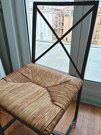 tavolo in ferro battuto nero e vetro 4 sedie in ferro battuto e paglia misure: 150x80 ritiro ad Alassio