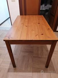 Vendo per motivi di spazio tavolo fisso rettangolare (non allungabile) interamente in legno modello Jokkmokk Ikea. Sono presenti segni di usura. Il prezzo è comprensivo di 4 sedie(di cui 2 da sistemare ma integre). Per info(misure, foto..) in pvt. Solo interessati grazie