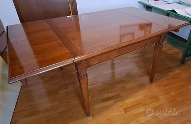 TAVOLO - Dalla forma quadrata allungabile, è un tavolo maestoso che si contraddistingue per il massiccio piano in legno e il dettaglio della gamba finemente tornita, che si inserisce nella struttura in modo naturale ed elegante.