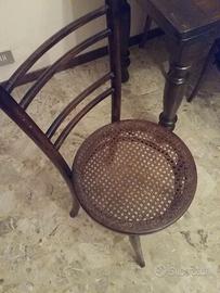 4 sedie in legno tipo Thonet, con seduta in paglia di Vienna.