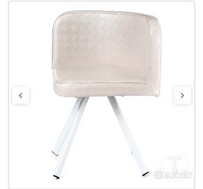 o 4 sedie con struttura in metallo bianco, seduta e schienale imbottiti in PVC bianco con finitura trapuntata
