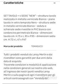 VENDO Tavolo + 4 Sedie Tomasucci - COME NUOVO