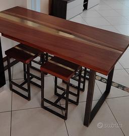 -tavolo altezza 88 cm, lunghezza 1.90 m, larghezza 85 cm; piano in legno e resina, gambe in ferro grezzo