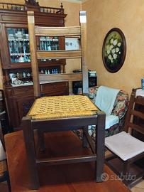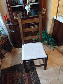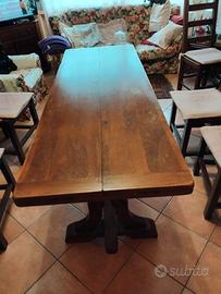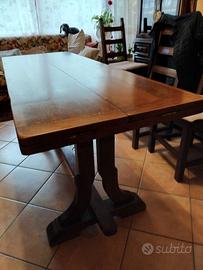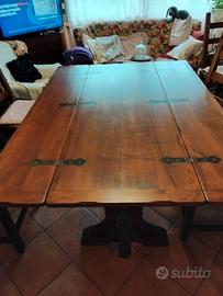 Tavolo fratino e 6 sedie in legno noce massello. Lunghezza 180 cm per 65 cm Completamente aperto e' largo 130 cm Aperto solo una parte e' largo 97 cm Con plancia su misura. Sedie con seduta in paglia perfetta € 50 ciascuna