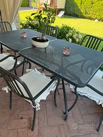 Tavolo dimensione: cm 90, p.cm 90, h.cm 75. Tavolo fisso modello Cambi by Emu, realizzato con struttura in acciaio verniciato, piano in lamiera stirata pre zincata a caldo verniciata. Con 6 sedie Solo un tavolino costa 293€