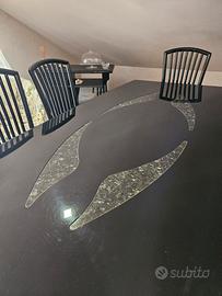 vendo tavolo nero laccato con intagli di marmo granito nero africa m.2 x m.1
