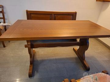 Tavolo e cassapanca in legno di castagno. Usati ma in buone condizioni. Tavolo 150×80 cm allungabile a 230 cm con due prolunghe da 40 cm l'una. Cassapanca lunga 140 cm. Ritiro a carico dell'acquirente a Torgnon.