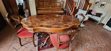 Tavolo con 4 sedie in rovere con cassettiera e specchio tutto molto antico. Vendo per cambio arredamento