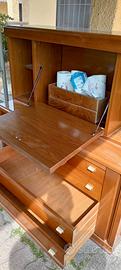 Vendo due mobili per arredamento in legno, tavolo circolare e cassettiera