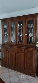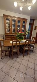 tavolo rettangolare in noce con 6 sedie,mis:180×80 e credenza in noce, 170x 45 e vetrina profondità 34