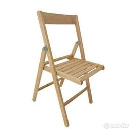 Vendo in corpo unico, un tavolo in legno pieghevole e due sedie in legno pieghevoli.