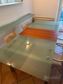 Tavolo e mensola di vetro ottime condizioni (design). In omaggio anche le sedie