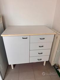 Tavolo bianco cm 80x140 che allungato diventa 175cm euro 50 - mobiletto bianco con cassetti 80x50 cm euro 30