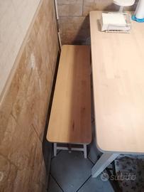 Tavolo e panca entrambi in legno massiccio di betulla Ikea (Norraker) , come nuovi. Pagati 250€, misure: lunghezza 125,larghezza 75, altezza 75.