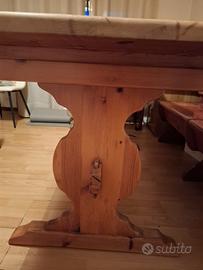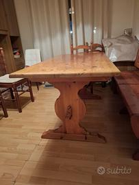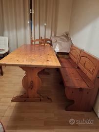 Tavolo 1,58 cm lunghezza l Larghezza77cm......panca lunghezza 1,55 cm profondità 44 cm Vero legno di pino Entrambi hanno circa 40 anni