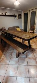 Tavolo da taverna 250 x 80 cm spessore 9 cm. Si cede completo di 2 panche, una con schienale e di 3 sedie.