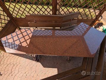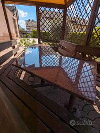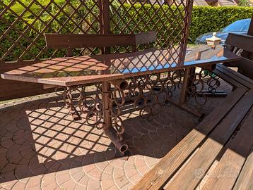 Tavolo da esterno con ripiano in granito e base in ferro artigianale con panche rustiche in legno. Molto resistente, adatto a taverne, giardini, gazebo. Si richiede ritiro, prezzo trattabile