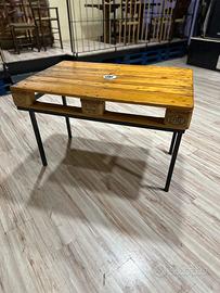 Il tavolo è realizzato con europallet lavorato, levigato e rifinito con vernice lucida, dotato di gambe in ferro molto solide.